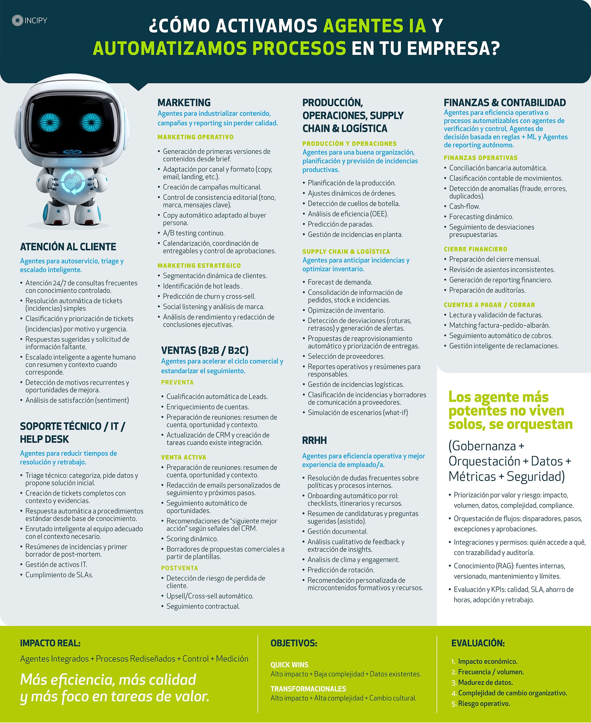 En este artículo sintetizamos el enfoque de INCIPY para activar agentes IA y automatizar procesos con impacto: más eficiencia, más calidad y más foco en tareas de valor.