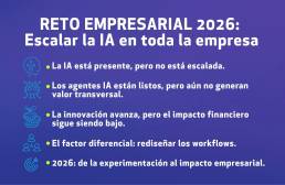 A medida que avanzaremos en 2026, el reto para las compañías no será “implementar IA”, sino escalarla a toda la organización y al negocio, activar agentes IA, rediseñar workflows e integrar la IA en la estrategia, la cultura y la operativa.